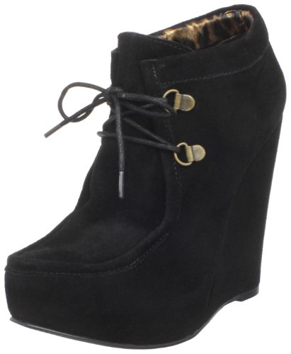 It's all about thrills and frills in these fashionably fancy Betsey Johnson booties. This shoe features a suede leather upper, lace up front, covered platform and wedge heel, man made lining, lightly padded footbed, decorative piping and top stitching details, and a padded collar for added comfort. Heel height measures 4 1/2". Platform height measures 1". Style Name: Ryaan.